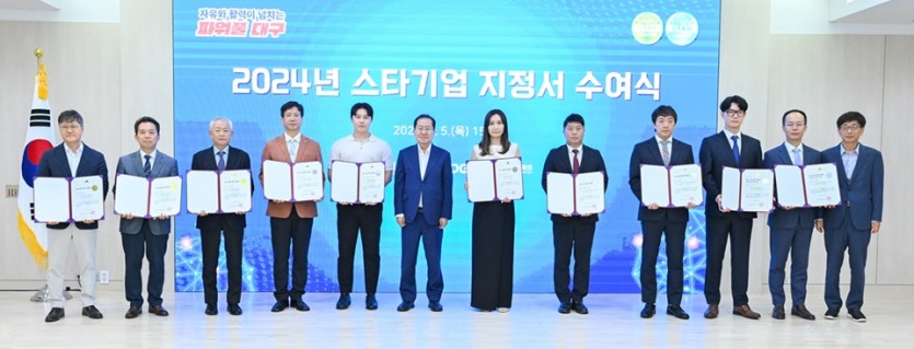 대구시는 성장 잠재력이 높은 중소기업 10개사를 '2024년 신규 스타기업' 및 'Pre-스타기업'으로 선정하고 5일 엑스코에서 지정서 수여식을 개최했다.