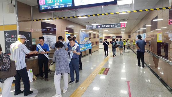 이날 행사는 도시철도 이용 승객들에게 얼음 생수 1000개와 쿨 타월 1000개가 무료로 배부됐으며 지난 6월에 실시한 폭염 예방 합동 캠페인과 역사 무더위 쉼터에 대한 일제 특별 점검에 이어 진행된 것이다.