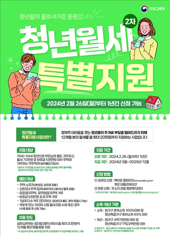 2월 26일(월)부터, 19~34세의 부모와 따로 거주하는 무주택 청년 대상