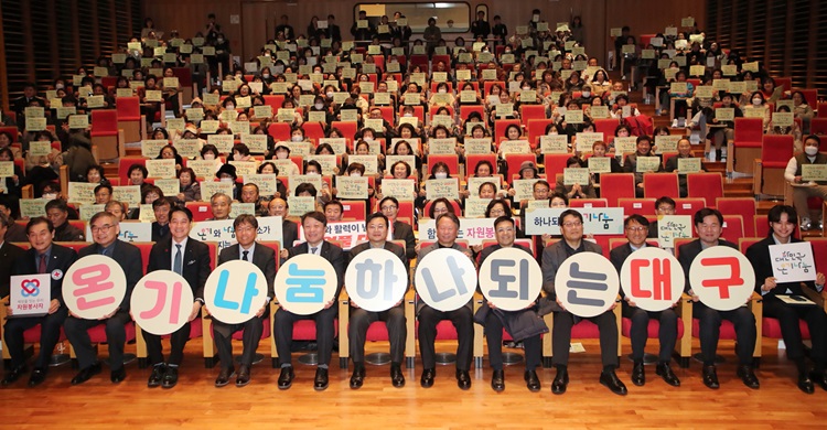 대구시는 25일 대구은행 제2본점에서 봉사·나눔 분위기 조성과 온기나눔 범국민 캠페인 확산을 위해 공공기관, 자원봉사단체, 민간기업 등이 참여하는 ‘온기나눔 대구추진본부’ 발대식을 개최했다고 밝혔다.