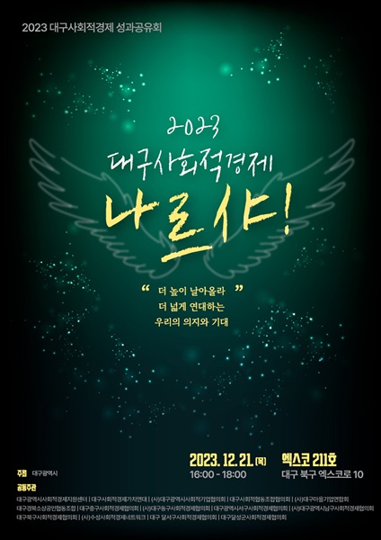 대구시와 대구시사회적경제지원센터는 21일 엑스코 서관 에서 ‘2023 대구 사회적경제 성과공유회’를 개최한다고 밝혔다.