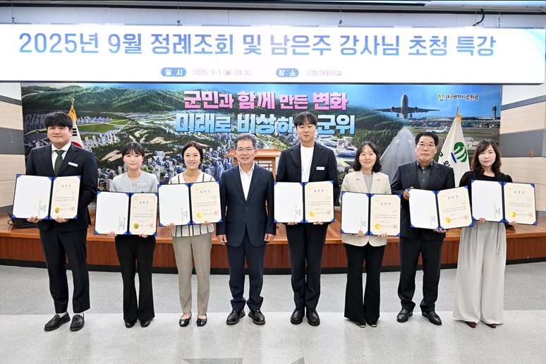 군위군은 지난 28일 ‘2025년 상반기 적극행정 우수공무원’ 7명을 선발했다고 밝혔다.