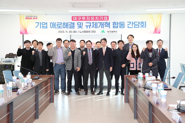 대구시는 28일 대구국가산업단지 내 노사평화의 전당에서 민선8기 투자유치기업을 대상으로 ‘제5차 기업 애로해결 및 규제개혁 합동간담회’를 개최했다고 밝혔다.