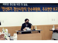 6. 9. ~ 6. 14. "2022 주요현안 업무"청취,조직·기능, 예산현황 파악 및 민선8기 시정방향 정립,조현일 경산시장 당선인과 민선8기 경산시장직 인수위원회는 9일부터 14일까지 인수위원회 회의실에서 민선 8기 경산시 시정 방향을 모색하고 주요사업을 파악하기 위해 "2022 주요현안 업무"보고를 청취한다고 밝혔다.이번 보고회 세부 일정으로는 9일 기획재정국과 행정지원국을 시작으로 10일 복지문화국, 건설도시안전국 13일 보건소, 농업기술센터, 14일 감사담당관, 경제환경국 순으로 주요현안 등을 보고받는다.인수위는 4일간 국…