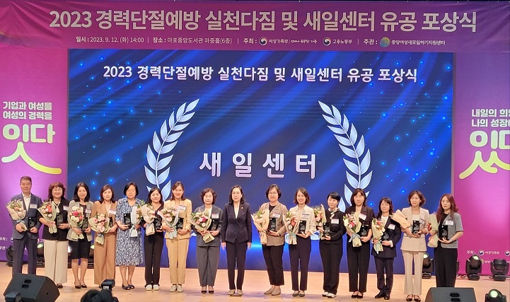 이날 포상식은 전국 155개소 새일센터의 2022년 사업실적을 평가한 결과로 15개의 우수기관과 유공자를 선정해 표창한 자리였다.