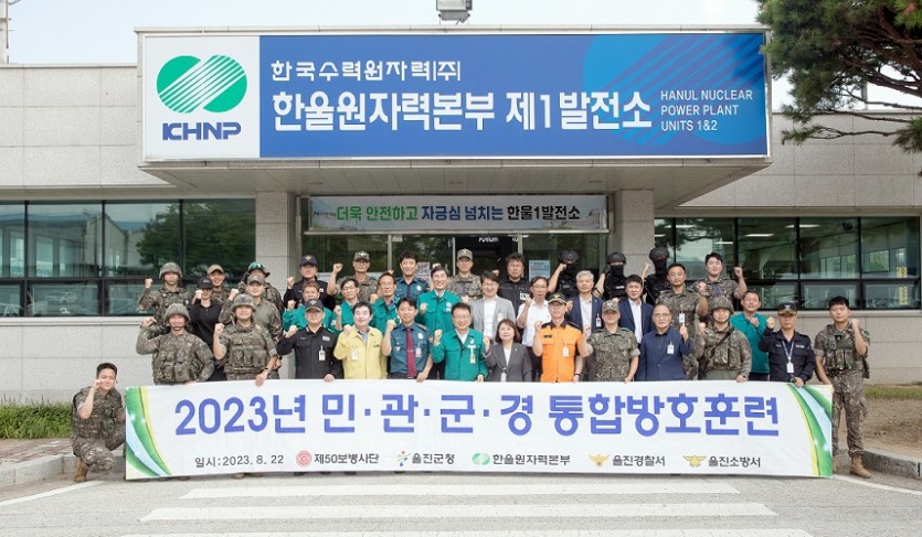 이번 훈련은 육군 50사단 주관하에 국가중요시설 방호능력 향상 및 유관기관과 협조체계 구축을 목적으로 실시돼 한울본부 청원경찰과 특수경비대 및 자체 소방대를 포함해 50사단 예하 부대, 울진군 경찰 및 소방, 울진군청 방사능측정팀 등 100여 명이 참가했다.
