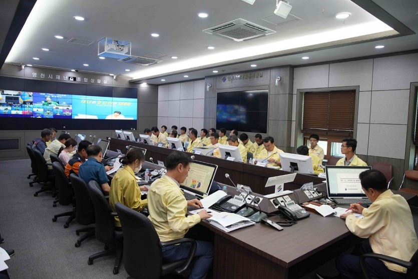 이날 회의는 최기문 영천시장 주재로 열린 태풍의 예상 이동경로와 기상전망 등 기상상황 분석과 중점 관리사항을 전파하고, 태풍 대비 부서별 대처상황, 주민 사전 대피 상황판단 등 전반적인 대처상황을 재차 점검했다.