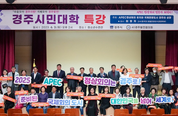 경주시가 경주시민대학에서 2025 APEC 정상회의 경주 유치를 위한 특강을 열어 경주 유치의 당위성을 강조했다.