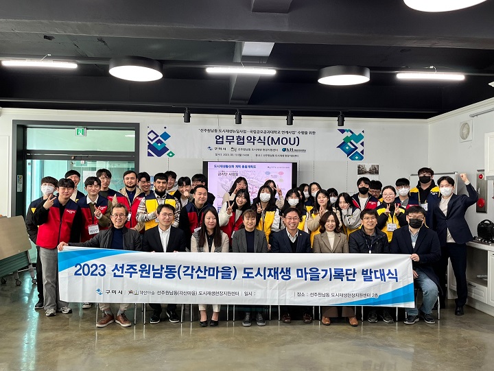 구미시와 선주원남동 도시재생현장지원센터는 13일 금오공과대학교 건축학부와‘선주원남동 도시재생뉴딜사업’의 성공적 추진을 위한 민-관-학 협력적 거버넌스를 구축하기 위해 업무협약(MOU)을 체결했다고 밝혔다.