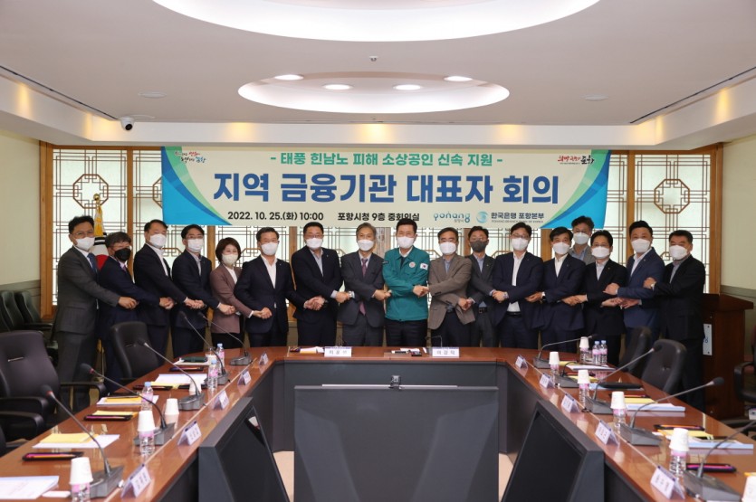 포항시와 한국은행 포항본부는 25일 시청에서 코로나19 및 태풍 ‘힌남노’로 인한 소상공인들의 피해 지원 및 안정적인 일상회복을 위해 ‘지역 금융기관 대표자 회의’를 개최했다고 밝혔다.