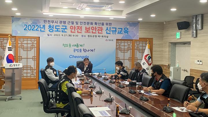 청도군은 지난 27일 제1회의실에서 2022년 신규 안전보안관 13명을 대상으로 필수교육을 실시했다고 밝혔다.