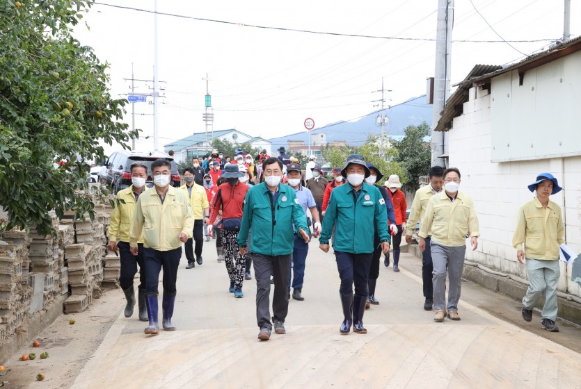 주 시장은 추석연휴 12일 오전 부터 내남 이조‧안심, 불국 진티마을, 문무대왕 호암‧용동, 암곡 왕산마을 등의 주택‧상가 침수 현장,  하천범람 및 제방유실, 비닐하우스 침수현장 등을 차례로 방문했다.