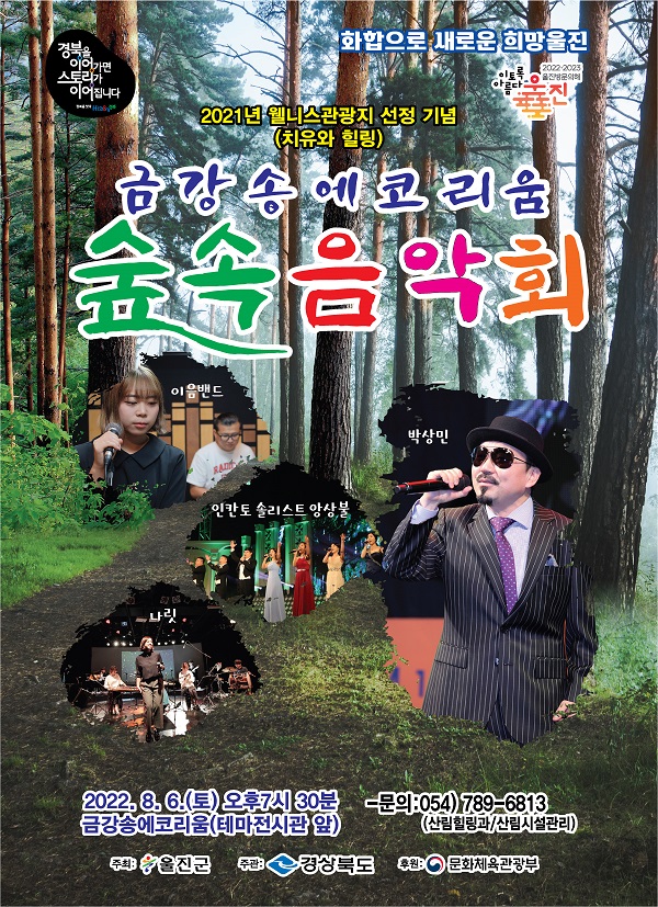 이번 숲속음악회는 코로나19 장기화와 산불피해로 상처를 입은 군민들의 마음을 위로하고 금강송에코리움을 찾는 이용객들의 힐링만족감을 높이기 위해 마련됐다.