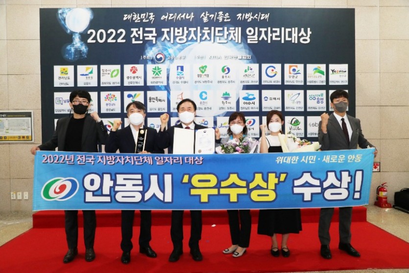 안동시가 21일 정부세종컨벤션센터에서 ‘2022년 전국 지방자치단체 일자리대상’에서 우수상과 함께 7천만 원의 재정지원 인센티브를 받았다고 밝혔다.
