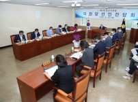 경산시의회는 28일, 의회 운영위원회 회의실에서 제9대 의원 당선인 15명을 대상으로 간담회를 개최했다고 밝혔다.이번 간담회는 오는 7월 5일 제9대 경산시의회 개원을 대비해 당선된 의원 상호 간의 상견례와 의정활동에 필요한 주요 사항을 안내하기 위해 마련됐다.이기동 제8대 경산시의회 의장의 인사말에 이어 당선의원 배지 전달, 상견례, 사무국 직원소개, 의회 현황 및 조직 안내 순으로 진행됐다.이어 개원식 및 회기 운영계획, 향후 주요 의정활동, 본회의장 의석 배정, 상임위 구성, 운영위 및 윤리특위 구성 등 전반적인 사항을 설명한…