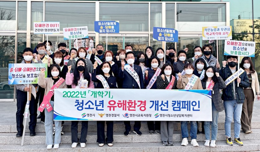 영천시는 29일 영천경찰서, 영천시교육지원청, 청소년시설 관계자, 법무부 청소년범죄예방 영천위원회 등 30여 명이 참여해 청소년 유해환경 개선활동 캠페인을 실시했다고 밝혔다.