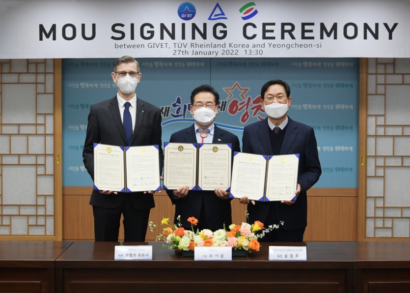 (재)경북자동차임베디드연구원과 영천시는 TÜV 라인란드 코리아(대표 프랭크 주트너)와 손잡고 미래 배터리분야 해외인증 취득에 박차를 가한다.