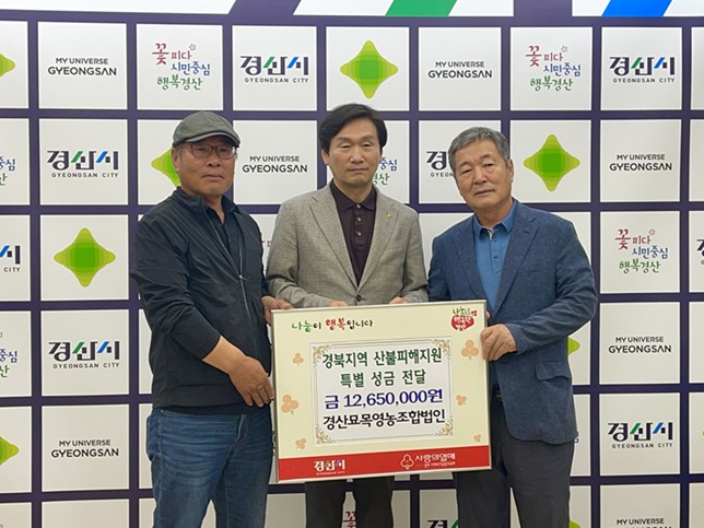 정희진 경산묘목조합 조합장은 “이번 산불로 삶의 터전을 잃고 어려움을 겪고 있는 주민들에게 작지만 따뜻한 위로가 되기를 바란다”며 “조합원들이 한마음으로 정성을 모았으며, 빠른 복구와 일상 회복에 조금이나마 도움이 되길 바란다”고 전했다.
