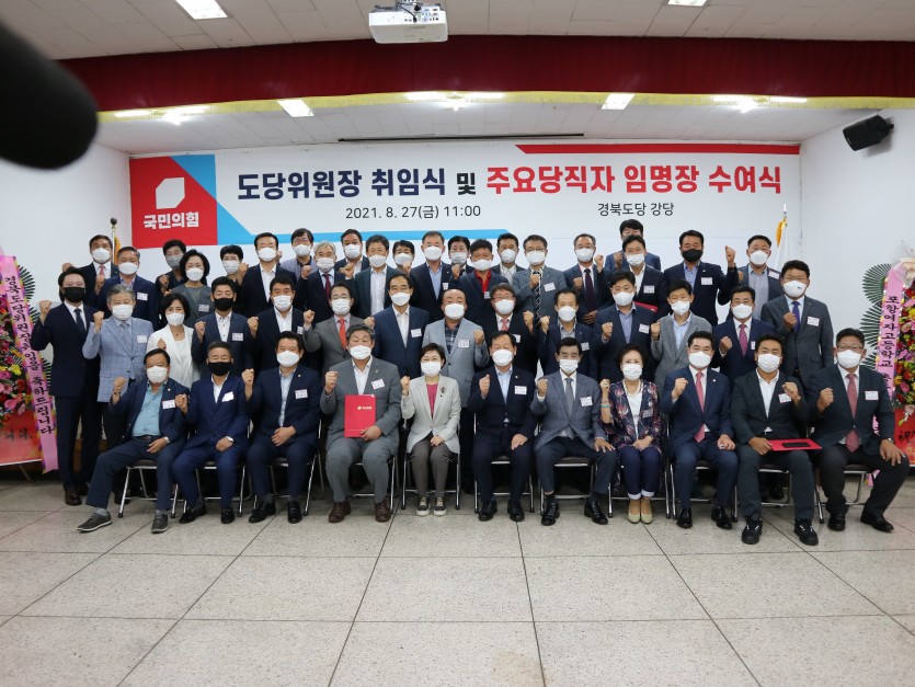 국민의힘 경북도당(위원장 김정재 국회의원)은 27일 도당 강당에서‘2021 경북도당위원장 취임식 및 주요당직자 임명장수여식’을 개최했다.