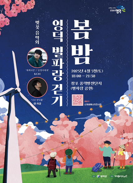 행사는 오후 6시 영덕신재생에너지전시관 주차장에서 시작되며, 드럼통 조명으로 캠핑장 분위기를 조성하고 벚꽃 음악회도 열릴 예정이다.