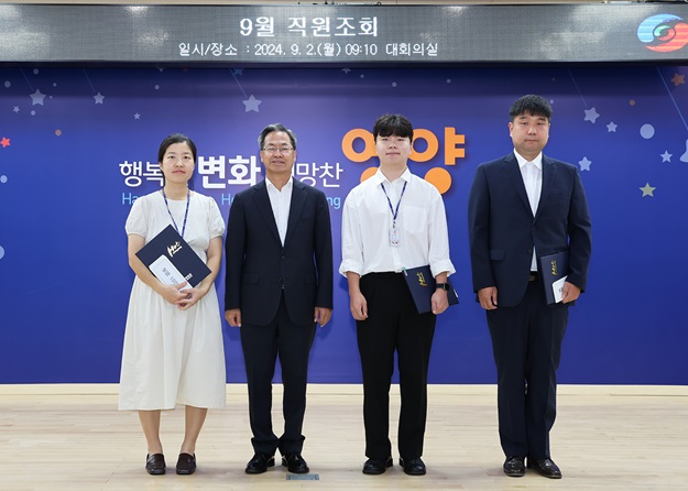 영양군은 2일, 직원조회에서 적극적이고 친절한 민원 응대로 민원인들에게 칭찬받은 직원들을 격려하기 위해 ‘2024년 2분기 민원감동 칭찬직원’을 선정하여 시상했다고 밝혔다.