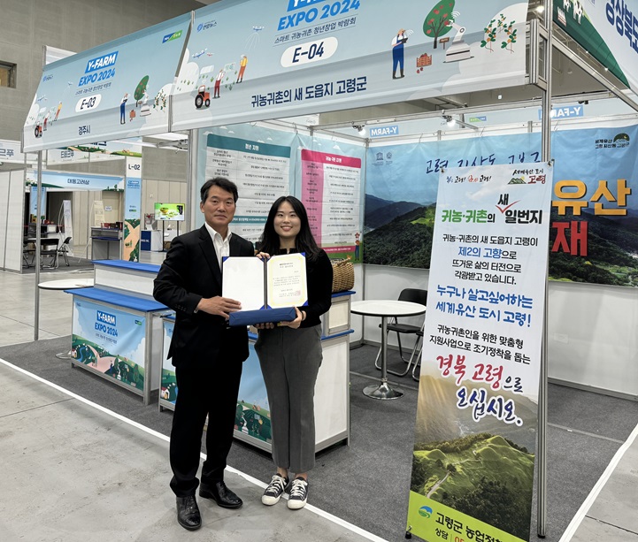 고령군이 4월 19일부터 21일까지 열린 'Y-FARM EXPO 2024 스마트 귀농귀촌 청년창업 박람회'에서 우수 홍보관상을 수상했다.