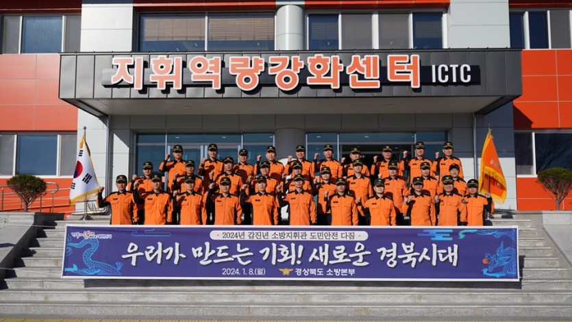 경북소방본부는 8일 경북소방학교에서 소방본부장을 비롯한 경북 관내 소방지휘관 31명이 참석한 가운데 2024년 갑진년 새해를 맞아 도민 안전을 책임지겠다는 결의를 다졌다고 밝혔다.