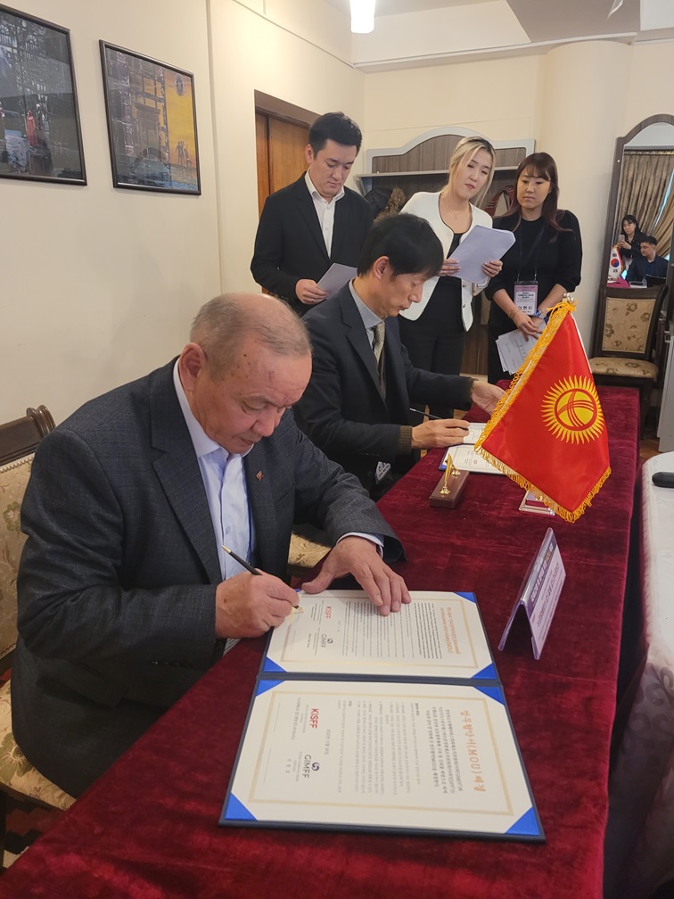 이번 협력 업무협약은 지난달 25일부터 29일까지 키르기스스탄 수도 비슈케크를 방문한 경북도 국제관계대사 채진원, 메타버스 영화제 조직위원회 집행위원장 신창걸, 영화감독 장철수 등으로 구성된 교류단의 일환으로 이뤄졌다.