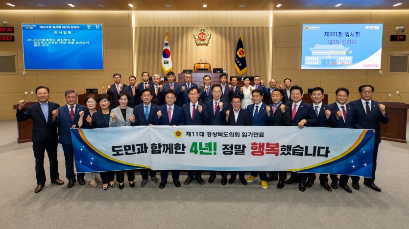 경북도의회는 23일 제331회 임시회 폐회 후 제11대 도의원을 비롯해 이철우 경북도지사, 임종식 경북도교육감, 경북도 및 교육청 간부 공무원 등 130여명이 참석한 가운데 제11대 경북도의회 임기만료 행사를 가졌다.
