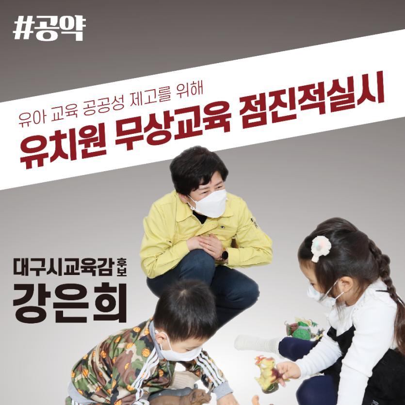 강은희 대구시교육감 후보는 24일 유치원 무상교육을 점진적으로 실시하겠다는 공약을 발표했다.