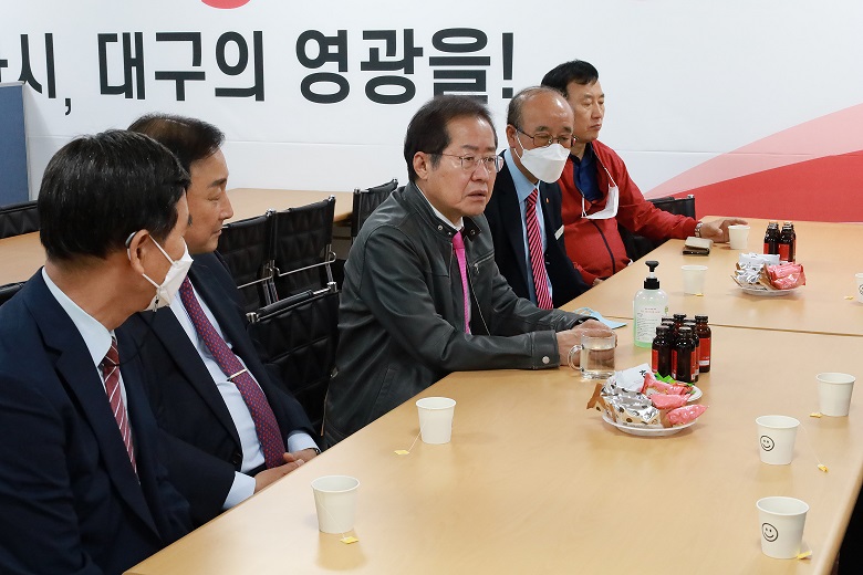 홍준표 국민의힘 대구시장 후보는 지난 13일. 14일 국채보상운동 기념사업회 회장단 간담회를 시작으로 대구시의정회, 대구경북중소기업회, 대구경북여성경제인연합회, 대구공인중개사협회, 대구개인택시조합 등 ‘대구 대전환’과 ‘파워풀 대구’를 만들기 위한 대구 대개조 구상의 구체화 작업에 들어갔다.