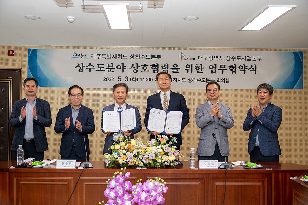 한편 제주시 상하수도본부에서 열린 협약식은 김정섭 대구상수도사업본부장, 안우진 제주특별자치도 상하수도본부장, 관련 실무담당자 등이 참여했으며, 양 기관의 선진기술과 우수사례 설명, 협약서 체결 순으로 진행됐다.