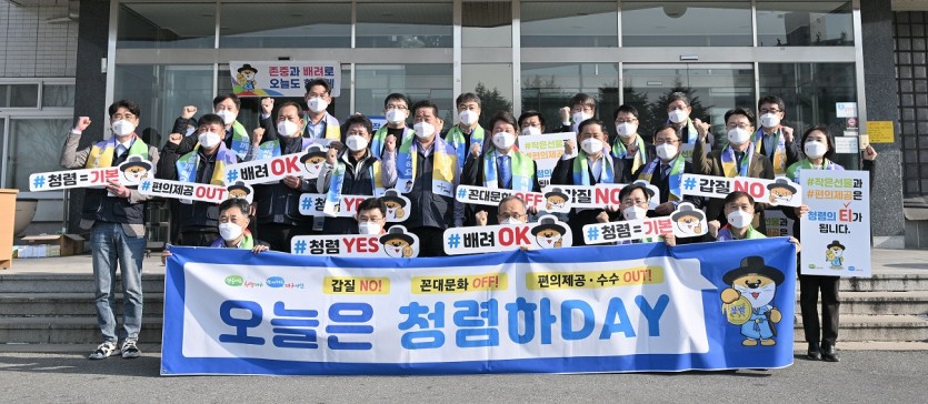 이날 진행된 캠페인에서는 세대공감 3대 관행 근절을 위해 ‘갑질’, ‘꼰대문화’, ‘편의제공·수수’으로 상징되는 매트를 밟고 지나가는 퍼포먼스를 비롯해 간부공무원이 출근하는 직원들에게 직접 청렴 홍보물을 나눠주고 상호 존중과 배려의 청렴한 조직 문화 조성을 다짐하는 프로그램이 진행됐다.