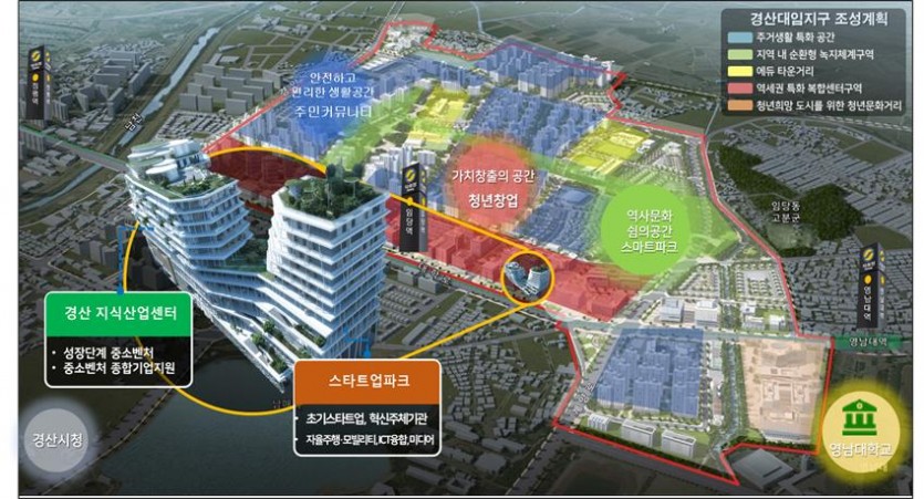 스타트업파크는 창업자, 투자자, 대학 및 연구기간 등 혁신 주체가 열린공간에서 네트워킹하는 창업 집적화 공간 조성사업으로 현재 진행중인 경산 지식산업센터와 연계해 벤처기업의 창업에서 성장, 글로벌 진출까지 맞춤형 지원 시스템 구축하고 지역 청년들의 기술창업 전진기지로서 역할을 할 계획이다.
