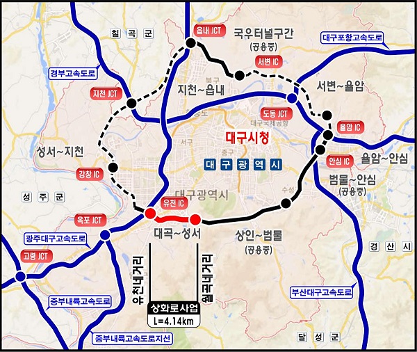 상화로 입체화 사업은 총 사업비 3,400억 원을 투입해 오는 2027년 준공을 목표로 4차순환도로 서남측의 달서구 유천동~상인동 간 왕복 4차로의 지하도로를 건설하는 공사이다.