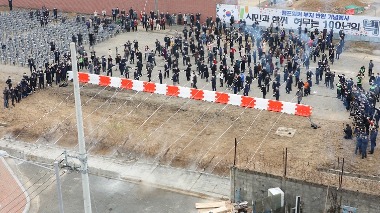캠프워커 반환부지는 지난 1921년 일본군 경비행장으로 조성된 이후 국군 비행장, 미군 활주로 등 줄곧 군사시설로 활용돼 시민의 출입이 금지돼 왔으며 행사에서는 금단의 땅으로 닫혀있던 공간이 시민의 품으로 돌아온다는 의미를 담아 시민이 직접 담장에 연결된 줄을 당겨 담장을 허문다.