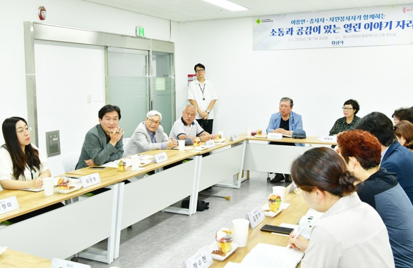 이어 복지관 이용자와 자원봉사자, 종사자들과 간담회를 열고 애로사항을 청취하며 직접 소통의 시간을 가졌다.