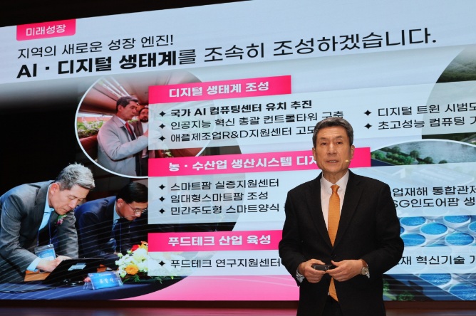 특히 수소 특화단지와 친환경 재생에너지 생산 기반도 마련해 글로벌 수소 시장을 선도할 예정이며 AI 및 디지털 패권 경쟁 시대에 대응하기 위해 국가 AI컴퓨팅센터 유치, 인공지능 혁신 컨트롤타워 구축, 연구데이터 통합플랫폼 등 인프라도 강화한다.