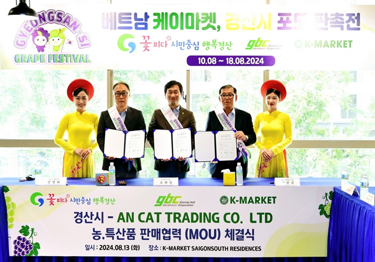 조현일 시장은 "한국 농식품 전문수입 유통업체인 K-마트사와 업무협약을 체결하게 된 것은 의미가 대단히 크다”면서 "K-마트사의 대형 유통망을 통해 경산의 농식품이 베트남 전역에 더 널리 알려지기를 기대한다”고 말했다.