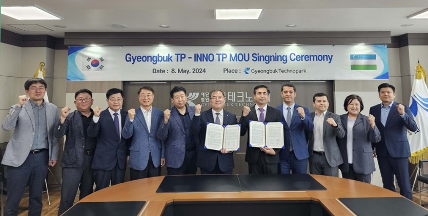 (재)경북테크노파크는 8일 우즈벡 이노테크노파크(INNO Technopark)와 업무협약을 체결하고 경북테크노파크 내 이노테크노파크 한국사무소 현판식을 가졌다고 밝혔다.