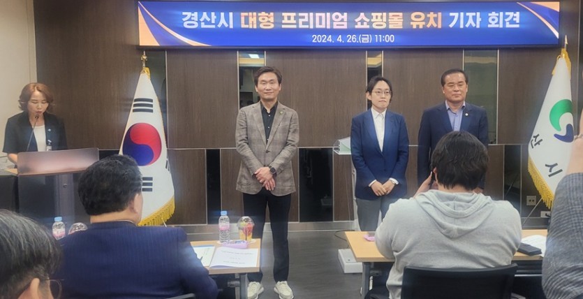 경산시는 26일 지역현안과 대형프리미엄 쇼핑몰 유치와 관련해 조지연 당선자,조현일 경산시장과 함께 출입기자 간담회를 개최했다고 밝혔다.