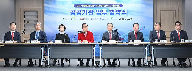 대구시는 산격청사에서 한국토지주택공사, 한국공항공사, 대구도시개발공사, 대구교통공사, 경북도개발공사와 "대구경북신공항 건설 및 종전부지 개발사업"의 성공적 추진을 위한 업무협약을 체결했다고 20일 밝혔다.