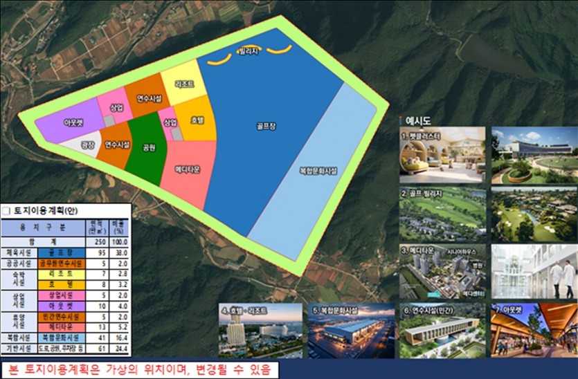 이번 협약은 대구시와 군위군에 걸쳐 약 250만㎡의 부지에 골프장, 아웃렛, 의료·문화시설이 복합된 하이엔드 시니어 메디타운, 반려동물 테마공원, 펫거리, 호텔, 리조트, 상업시설 등을 포함하는 복합레저단지를 조성하는 것을 목표로 하고 있다.