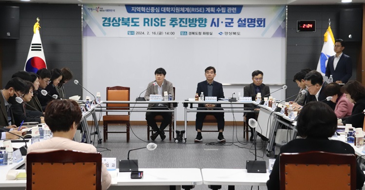 경북도는 지난16일 도청 화랑실에서 22개 시․군 대학 교육 관계부서장 등 50여 명이 참석한 가운데 ‘경북도 지역혁신중심 대학지원체계(RISE) 추진 방향 시군 설명회’를 개최했다고 밝혔다.