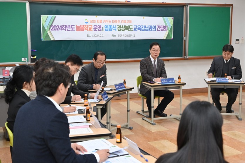 임종식 경북교육감은 7일 안동시에 있는 안동영호초등학교를 방문해 늘봄선도학교 운영을 위한 예산과 공간 확보 현황, 인력 운용 계획 등 지원 방안 현장 협의를 가졌다고 밝혔다.