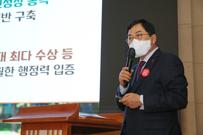 또 농촌협약(656억), 동남권 해양레저관광 거점 조성(490억), 어촌 신활력 증진(100억), 국민체육센터 건립(169억) 등 공모사업 총 35건 선정, 5732억 원의 사업비 확보로 역대 최대 규모 재정이라고 평가했다.