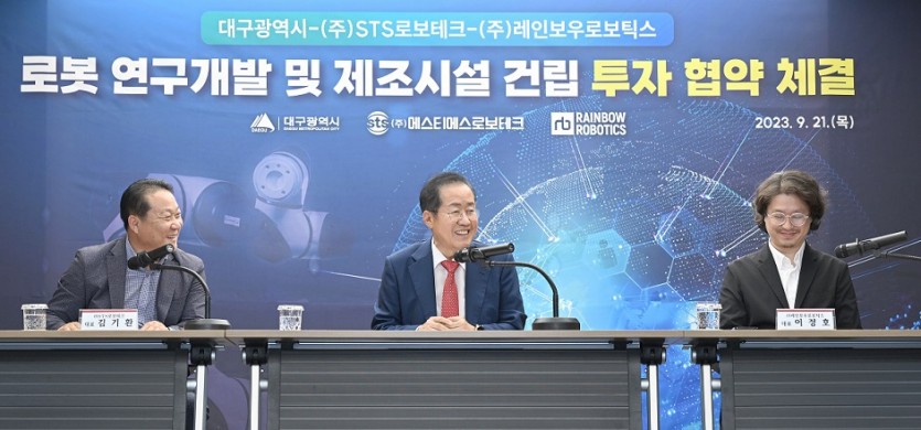 대구시는 로봇산업의 선도기업인 ㈜STS로보테크와 ㈜레인보우로보틱스와 투자협약을 체결했다고 21일 발표했다.