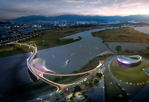 특히, 랜드마크 관광보행교는 길이 435미터, 폭 4~6미터의 아치교 형태로 디아크의 모티브인 물수제비와 두루미의 비상을 형상화한 디자인이다.