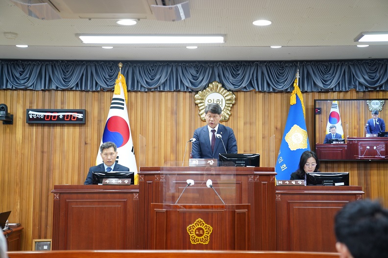 이번 본회의에 앞서 김정희 부의장은 의사진행 발언을 통해 경북도가 울진군 및 울진군의회와 어떠한 소통도 없이 환동해산업연구원과 경북바이오산업연구원의 통폐합을 추진하는 것에 대한 반대 입장을 밝혔다.