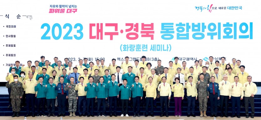 대구시는 7일 경북도와 공동으로 지역 안보에 대한 공감대를 형성하고 민·관·군·경의 긴밀한 협력과 통합방위체계 발전을 위한 ‘2023년 대구·경북 통합방위회의’를 엑스코에서 개최했다고 밝혔다.